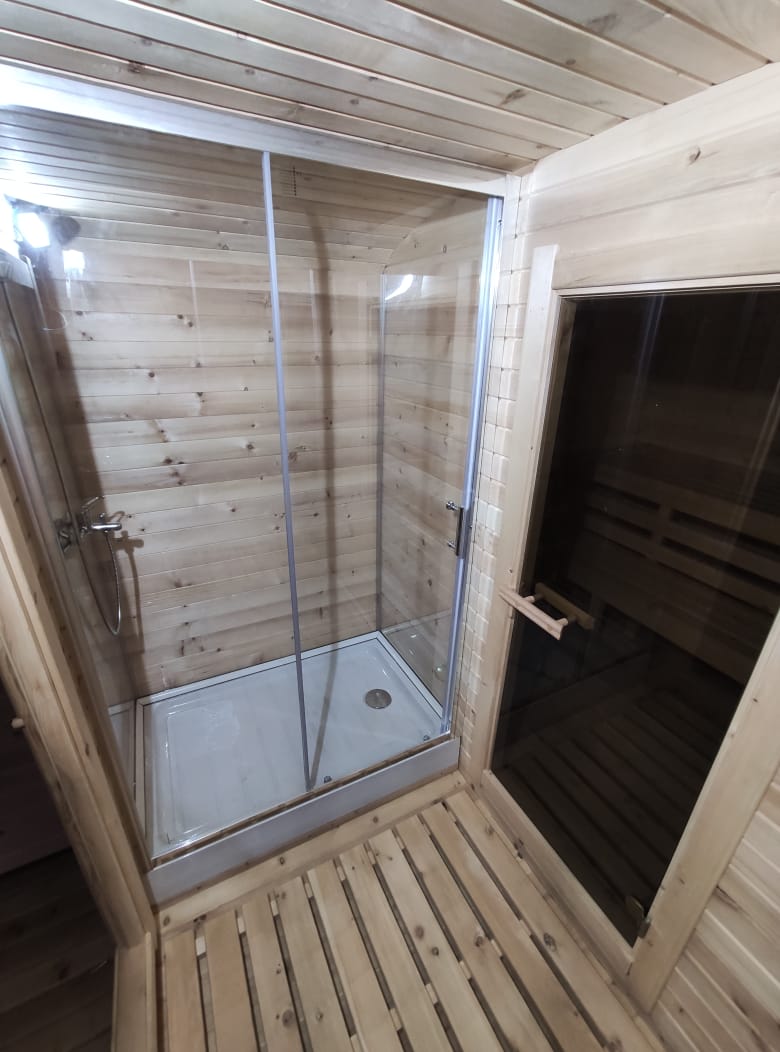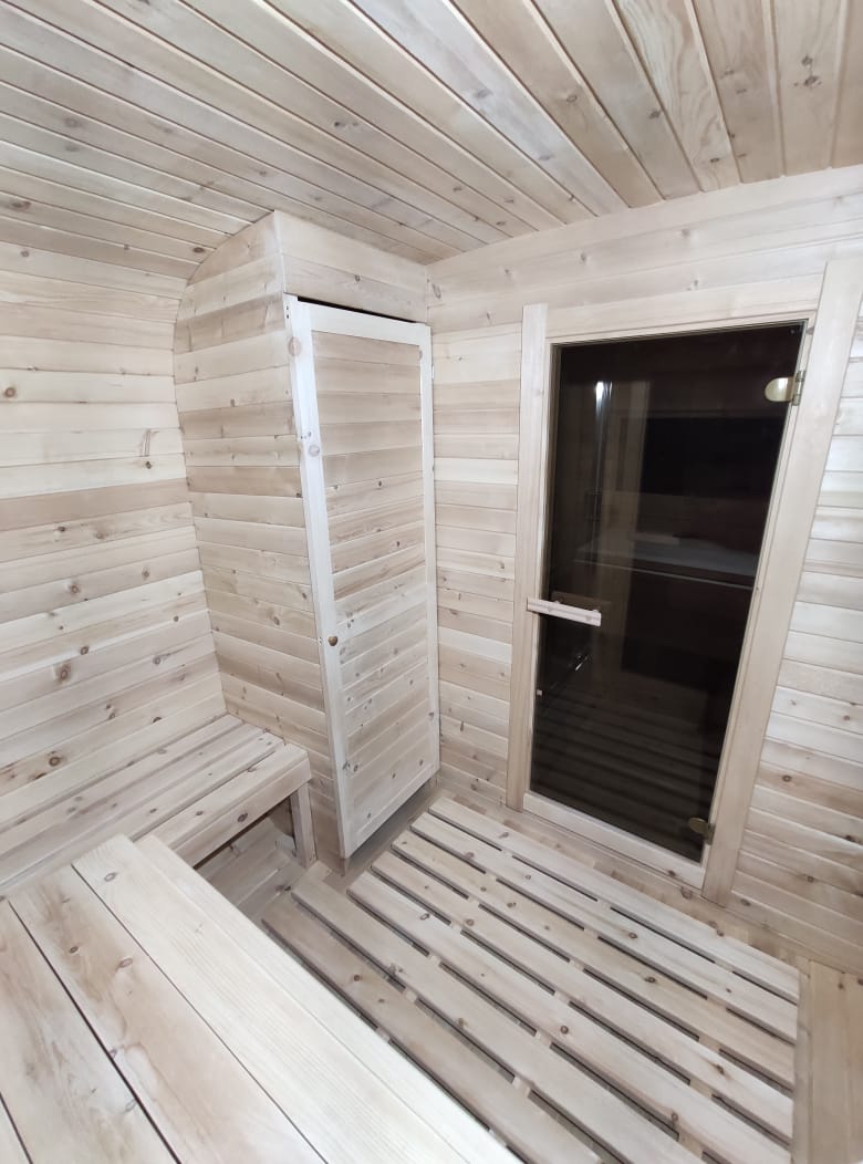 Пять метров кедрового пространства. Два отделения с боковым входом — парная и просторный предбанник, где хватит места для большой компании. Выбор тех, кто ценит простор.