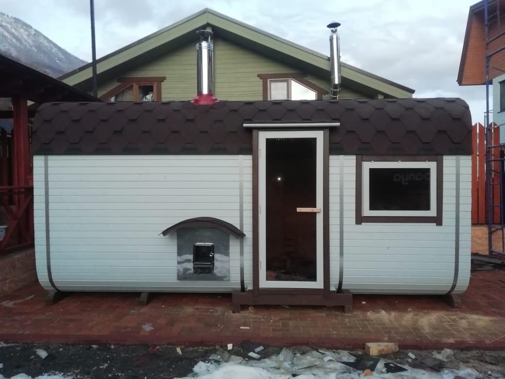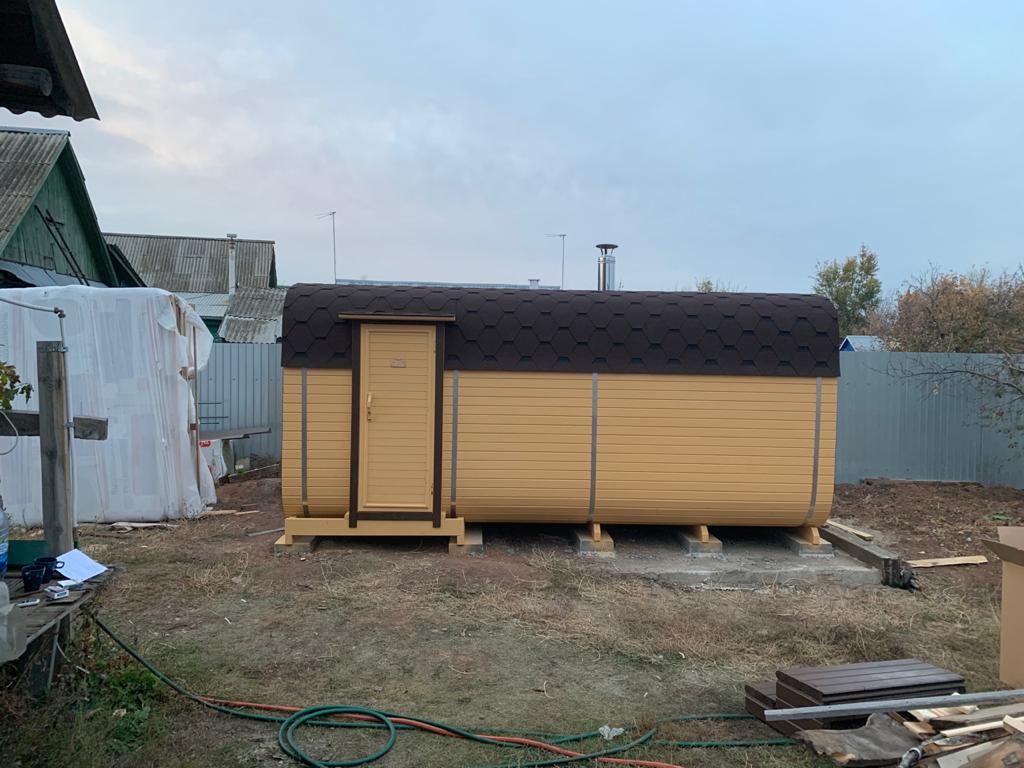 Начало линейки премиум. Два просторных отделения — парная и предбанник. Боковой вход для удобного размещения на участке. Идеальна для семьи.