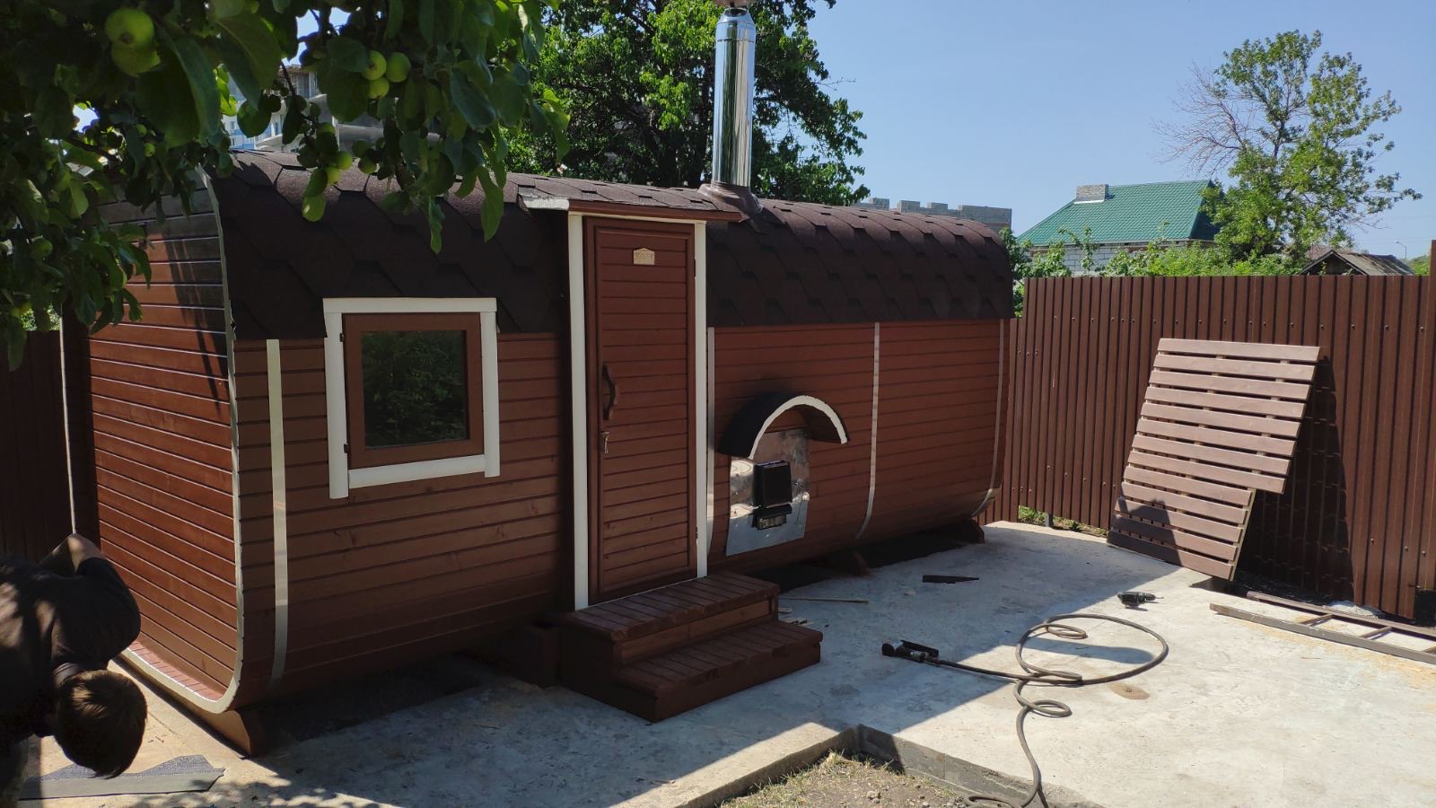 Каждую баню собирает конкретный мастер от начала до конца. Это не конвейер. Это ответственность за каждое соединение, каждый шов, каждую деталь.