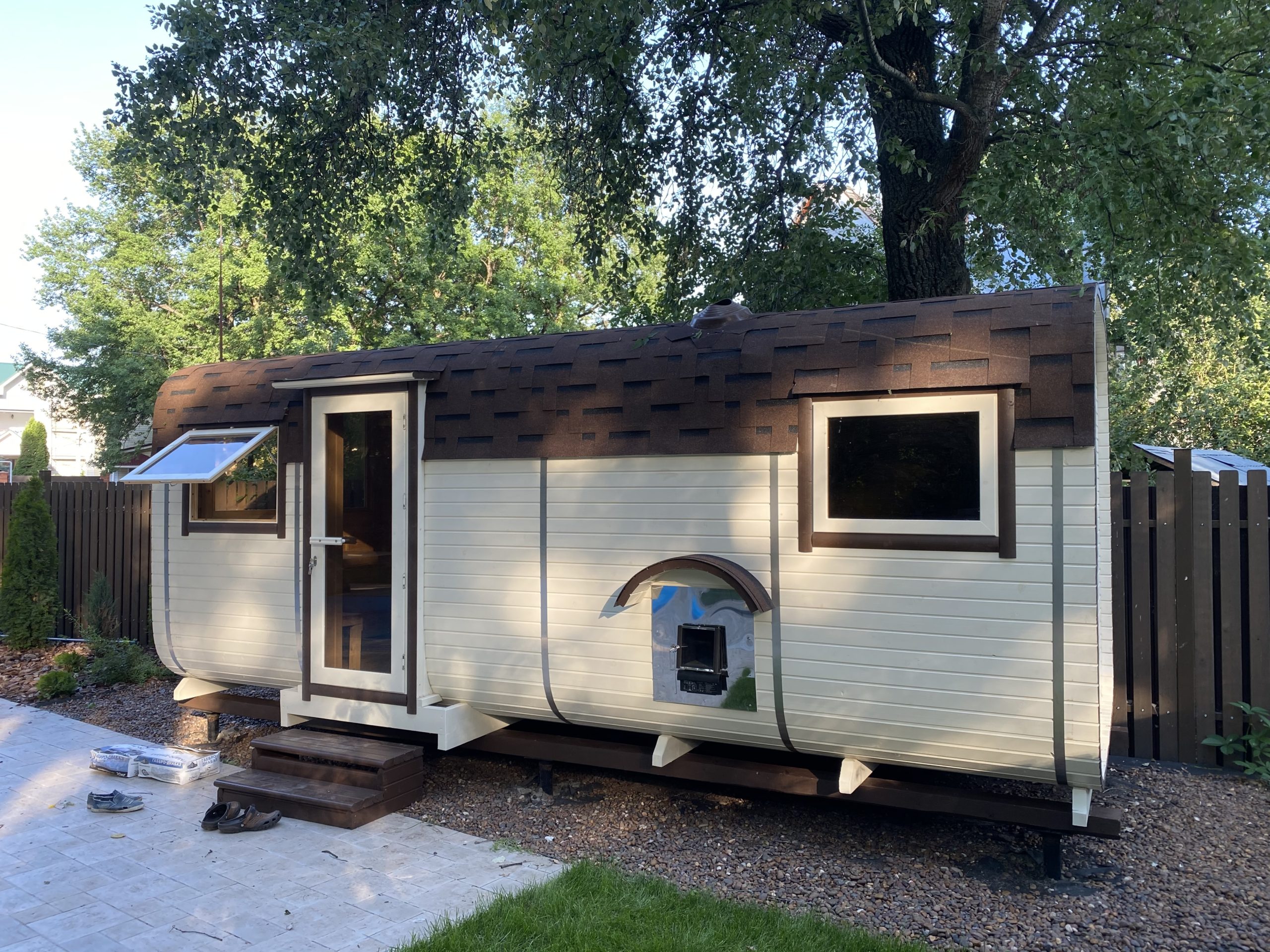 Конструкция рассчитана так, что баня выходит на рабочую температуру 80°C за двадцать минут. Экономия времени и дров — заметна с первого раза.